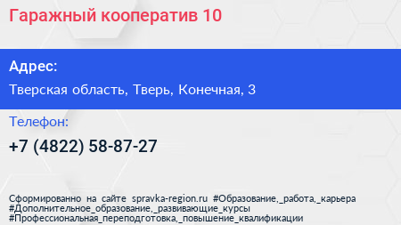 Гаражный кооператив №10 по адресу Тверская область, Тверь, Конечная, 3 в дальнейшем Организация, размещена в следующих категориях: