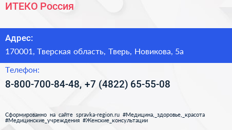 ИТЕКО Россия по адресу 170001, Тверская область, Тверь, Новикова, 5а в дальнейшем Организация, размещена в следующих категориях: