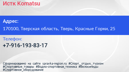 Истк Komatsu по адресу 170100, Тверская область, Тверь, Красные Горки, 25 в дальнейшем Организация, размещена в следующих категориях: