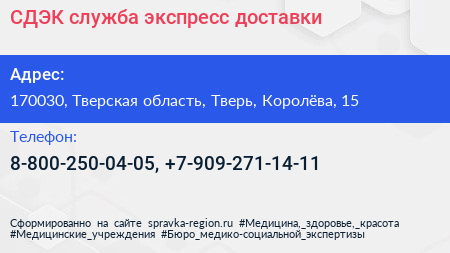 СДЭК, служба экспресс-доставки по адресу 170030, Тверская область, Тверь, Королёва, 15 в дальнейшем Организация, размещена в следующих категориях: