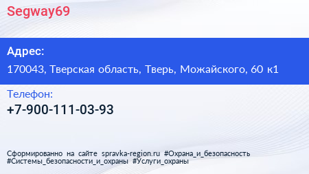 Segway69 по адресу 170043, Тверская область, Тверь, Можайского, 60 к1 в дальнейшем Организация, размещена в следующих категориях: