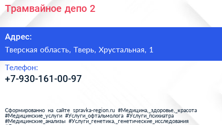 Трамвайное депо №2 по адресу Тверская область, Тверь, Хрустальная, 1 в дальнейшем Организация, размещена в следующих категориях: