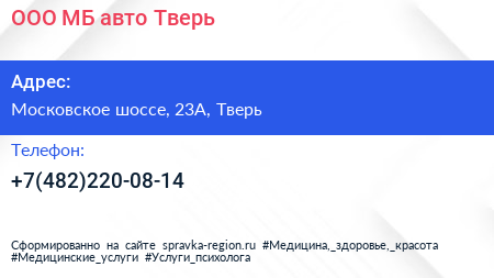 ООО «МБ-авто» Тверь по адресу Московское шоссе, 23А, Тверь в дальнейшем Организация, размещена в следующих категориях:
