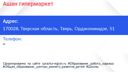 Ашан, гипермаркет по адресу 170028, Тверская область, Тверь, Орджоникидзе, 51 в дальнейшем Организация, размещена в следующих категориях:
