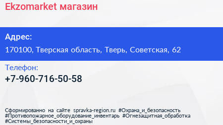 Ekzomarket, магазин по адресу 170100, Тверская область, Тверь, Советская, 62 в дальнейшем Организация, размещена в следующих категориях: