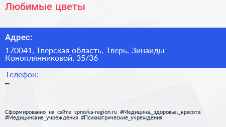 Любимые цветы по адресу 170041, Тверская область, Тверь, Зинаиды Коноплянниковой, 35/36 в дальнейшем Организация, размещена в следующих категориях: