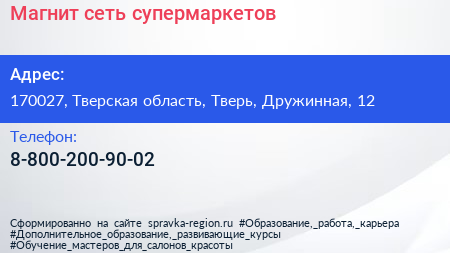 Магнит, сеть супермаркетов по адресу 170027, Тверская область, Тверь, Дружинная, 12 в дальнейшем Организация, размещена в следующих категориях: