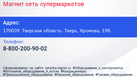 Магнит, сеть супермаркетов по адресу 170039, Тверская область, Тверь, Хромова, 19Б в дальнейшем Организация, размещена в следующих категориях: