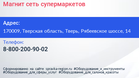 Магнит, сеть супермаркетов по адресу 170009, Тверская область, Тверь, Рябеевское шоссе, 14 в дальнейшем Организация, размещена в следующих категориях: