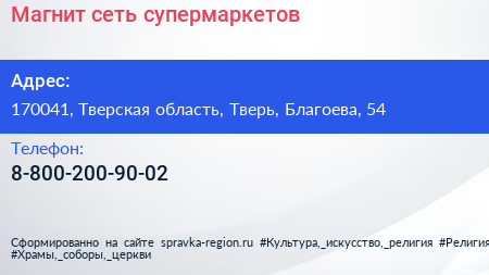 Магнит, сеть супермаркетов по адресу 170041, Тверская область, Тверь, Благоева, 54 в дальнейшем Организация, размещена в следующих категориях: