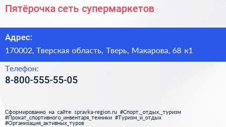 Пятёрочка, сеть супермаркетов по адресу 170002, Тверская область, Тверь, Макарова, 68 к1 в дальнейшем Организация, размещена в следующих категориях: