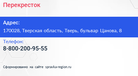 Перекресток по адресу 170028, Тверская область, Тверь, бульвар Цанова, 8 в дальнейшем Организация, размещена в следующих категориях: