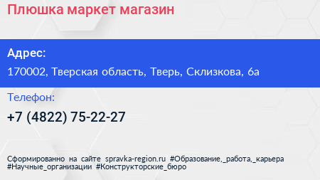 Плюшка маркет, магазин по адресу 170002, Тверская область, Тверь, Склизкова, 6а в дальнейшем Организация, размещена в следующих категориях: