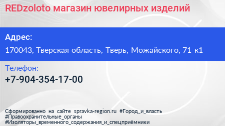 REDzoloto, магазин ювелирных изделий по адресу 170043, Тверская область, Тверь, Можайского, 71 к1 в дальнейшем Организация, размещена в следующих категориях: