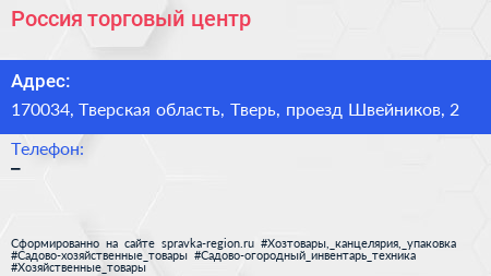 Россия, торговый центр по адресу 170034, Тверская область, Тверь, проезд Швейников, 2 в дальнейшем Организация, размещена в следующих категориях: