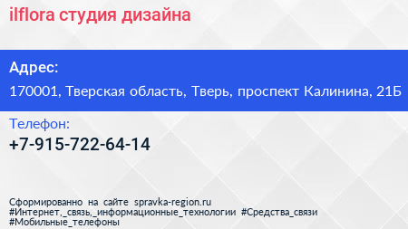 ilflora, студия дизайна по адресу 170001, Тверская область, Тверь, проспект Калинина, 21Б в дальнейшем Организация, размещена в следующих категориях: