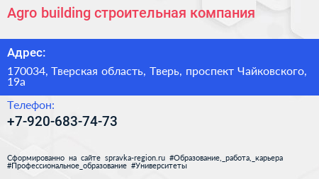 Agro-building, строительная компания по адресу 170034, Тверская область, Тверь, проспект Чайковского, 19а в дальнейшем Организация, размещена в следующих категориях: