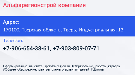 Альфарегионстрой, компания по адресу 170100, Тверская область, Тверь, Индустриальная, 13 в дальнейшем Организация, размещена в следующих категориях: