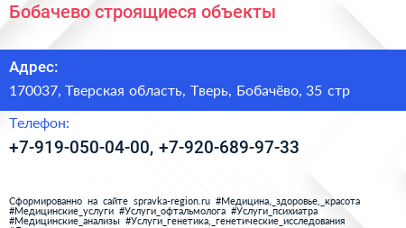 Бобачево, строящиеся объекты по адресу 170037, Тверская область, Тверь, Бобачёво, 35 стр в дальнейшем Организация, размещена в следующих категориях: