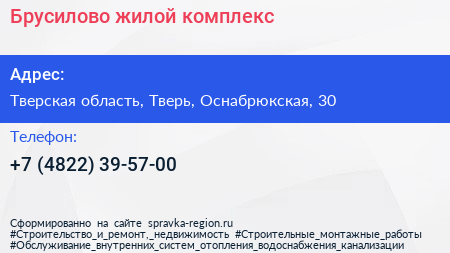 Брусилово, жилой комплекс по адресу Тверская область, Тверь, Оснабрюкская, 30 в дальнейшем Организация, размещена в следующих категориях: