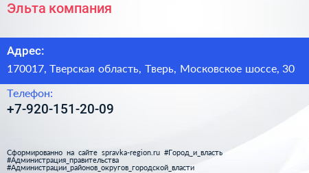 Эльта, компания по адресу 170017, Тверская область, Тверь, Московское шоссе, 30 в дальнейшем Организация, размещена в следующих категориях: