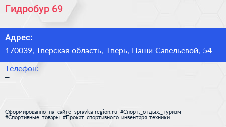 Гидробур-69 по адресу 170039, Тверская область, Тверь, Паши Савельевой, 54 в дальнейшем Организация, размещена в следующих категориях: