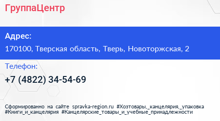 ГруппаЦентр по адресу 170100, Тверская область, Тверь, Новоторжская, 2 в дальнейшем Организация, размещена в следующих категориях: