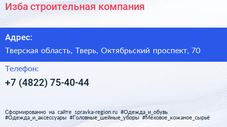 Изба, строительная компания по адресу Тверская область, Тверь, Октябрьский проспект, 70 в дальнейшем Организация, размещена в следующих категориях:
