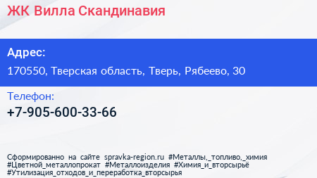 ЖК Вилла Скандинавия по адресу 170550, Тверская область, Тверь, Рябеево, 30 в дальнейшем Организация, размещена в следующих категориях: