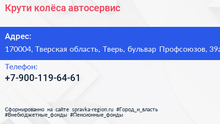 Крути колёса, автосервис по адресу 170004, Тверская область, Тверь, бульвар Профсоюзов, 39а в дальнейшем Организация, размещена в следующих категориях:
