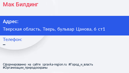 Мак Билдинг по адресу Тверская область, Тверь, бульвар Цанова, 6 ст1 в дальнейшем Организация, размещена в следующих категориях:
