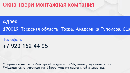 Окна Твери, монтажная компания по адресу 170019, Тверская область, Тверь, Академика Туполева, 61а в дальнейшем Организация, размещена в следующих категориях: