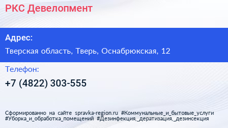 РКС Девелопмент по адресу Тверская область, Тверь, Оснабрюкская, 12 в дальнейшем Организация, размещена в следующих категориях: