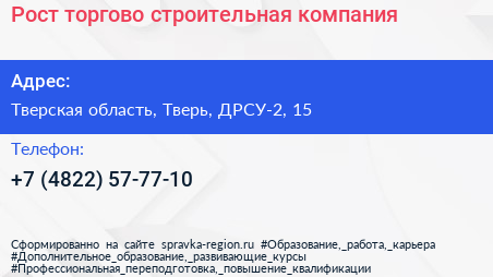 Рост, торгово-строительная компания по адресу Тверская область, Тверь, ДРСУ-2, 15 в дальнейшем Организация, размещена в следующих категориях: