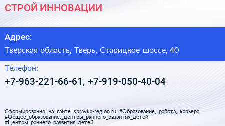 СТРОЙ-ИННОВАЦИИ по адресу Тверская область, Тверь, Старицкое шоссе, 40 в дальнейшем Организация, размещена в следующих категориях: