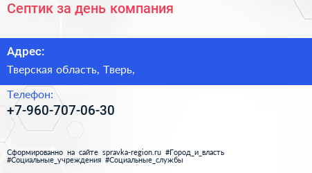 Септик за день, компания по адресу Тверская область, Тверь, в дальнейшем Организация, размещена в следующих категориях: