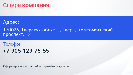 Сфера, компания по адресу 170026, Тверская область, Тверь, Комсомольский проспект, 12 в дальнейшем Организация, размещена в следующих категориях: