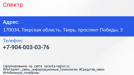 Спектр по адресу 170034, Тверская область, Тверь, проспект Победы, 3 в дальнейшем Организация, размещена в следующих категориях: