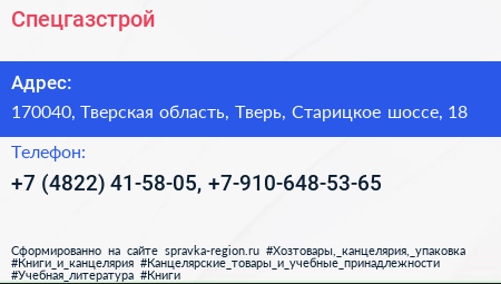 Спецгазстрой по адресу 170040, Тверская область, Тверь, Старицкое шоссе, 18 в дальнейшем Организация, размещена в следующих категориях: