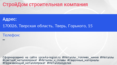 СтройДом, строительная компания по адресу 170026, Тверская область, Тверь, Горького, 15 в дальнейшем Организация, размещена в следующих категориях: