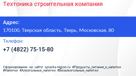 Техтоника, строительная компания по адресу 170100, Тверская область, Тверь, Московская, 80 в дальнейшем Организация, размещена в следующих категориях: