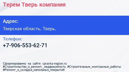 Терем Тверь, компания по адресу Тверская область, Тверь, в дальнейшем Организация, размещена в следующих категориях: