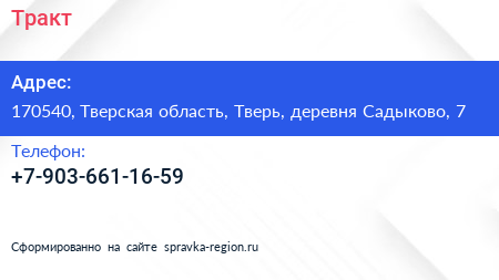 Тракт по адресу 170540, Тверская область, Тверь, деревня Садыково, 7 в дальнейшем Организация, размещена в следующих категориях: