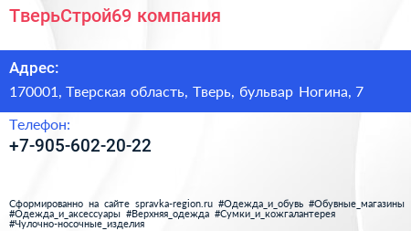 ТверьСтрой69, компания по адресу 170001, Тверская область, Тверь, бульвар Ногина, 7 в дальнейшем Организация, размещена в следующих категориях: