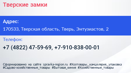 Тверские замки по адресу 170533, Тверская область, Тверь, Энтузиастов, 2 в дальнейшем Организация, размещена в следующих категориях: