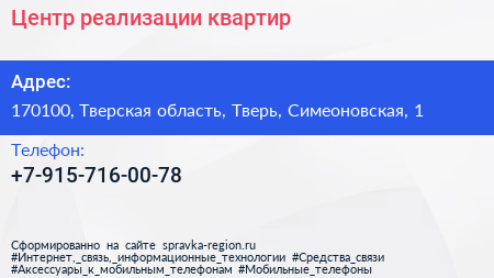 Центр реализации квартир по адресу 170100, Тверская область, Тверь, Симеоновская, 1 в дальнейшем Организация, размещена в следующих категориях: