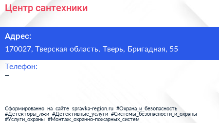 Центр сантехники по адресу 170027, Тверская область, Тверь, Бригадная, 55 в дальнейшем Организация, размещена в следующих категориях: