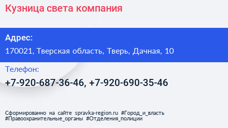 Кузница света, компания по адресу 170021, Тверская область, Тверь, Дачная, 10 в дальнейшем Организация, размещена в следующих категориях: