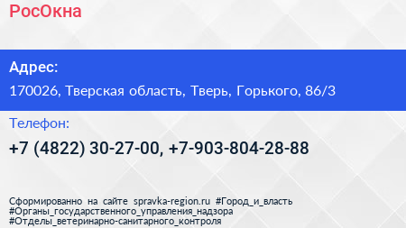 РосОкна по адресу 170026, Тверская область, Тверь, Горького, 86/3 в дальнейшем Организация, размещена в следующих категориях: