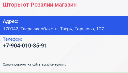 Шторы от Розалии, магазин по адресу 170042, Тверская область, Тверь, Горького, 107 в дальнейшем Организация, размещена в следующих категориях: